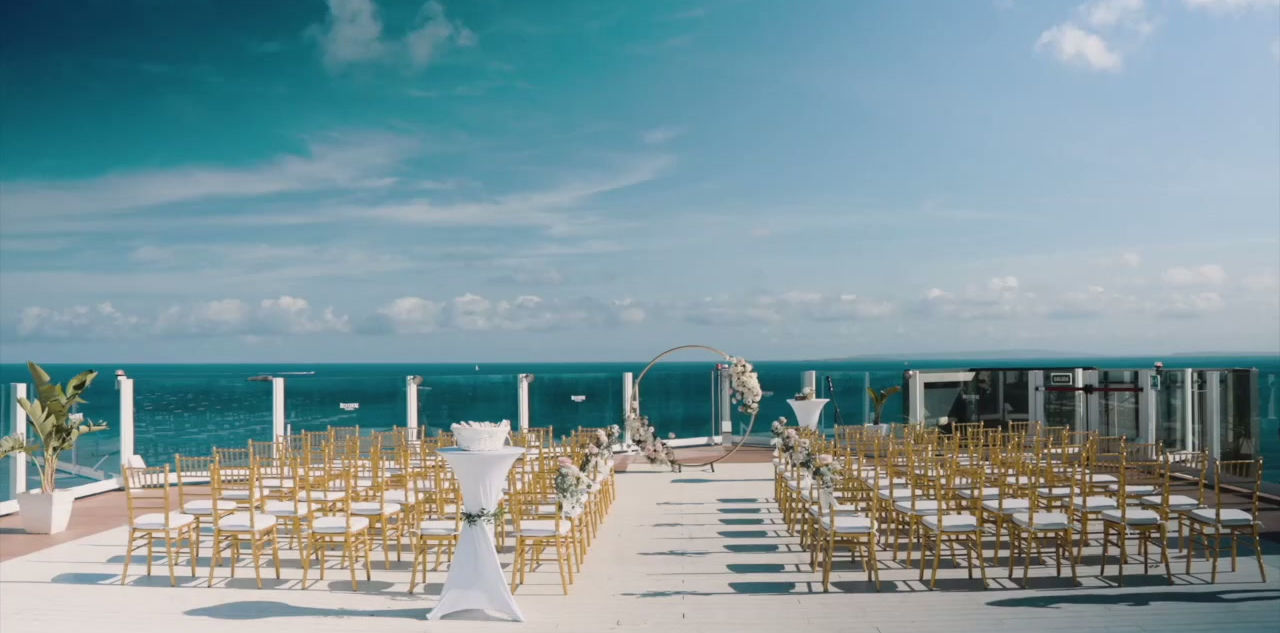 Los espacios junto al mar ofrecen horizontes infinitos, luz dorada y la serenidad del Mediterráneo. Los atardeceres dan paso a veladas a la luz de las velas, mientras la suave brisa y las vistas ininterrumpidas crean un entorno de elegancia natural para celebraciones sofisticadas.